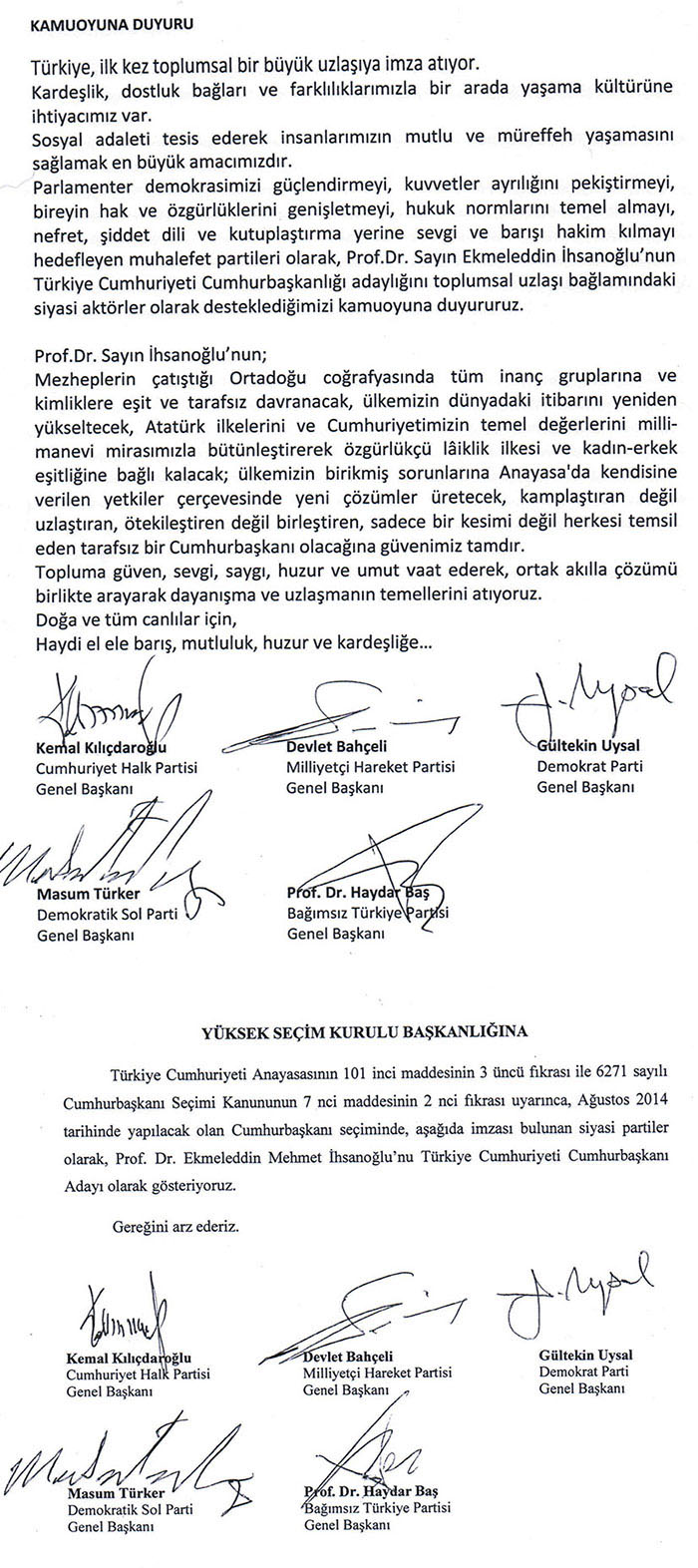 Cumhurbaşkanlığı Seçimleri Büyük Uzlaşı Belgesi
